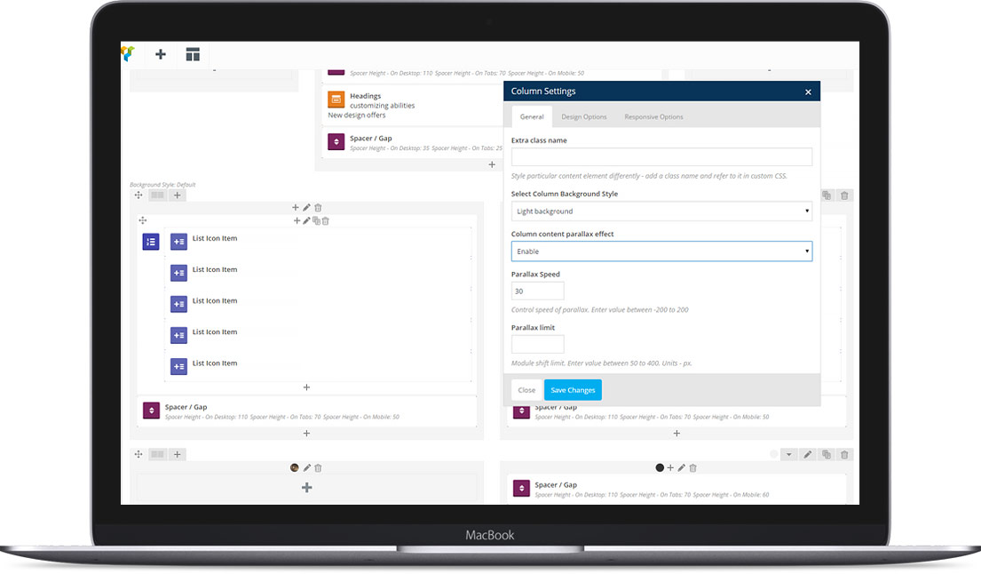 You can create amazing effects on two modules parallaxing with different speed, using shop product parallax or parallaxing both row background and module in it, etc. All of these will turn visiting your site into amazing experience.